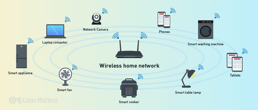 Các thiết bị Wi-Fi như router hoặc access point phát sóng tín hiệu Wi-Fi, và các thiết bị nhận sóng Wi-Fi như máy tính hoặc điện thoại di động nhận và kết nối với tín hiệu đó. Mạng Wi-Fi giúp cung cấp sự linh hoạt và tiện lợi cho các thiết bị trong mạng gia đình, cho phép kết nối không dây và truy cập internet từ mọi nơi trong phạm vi sóng.