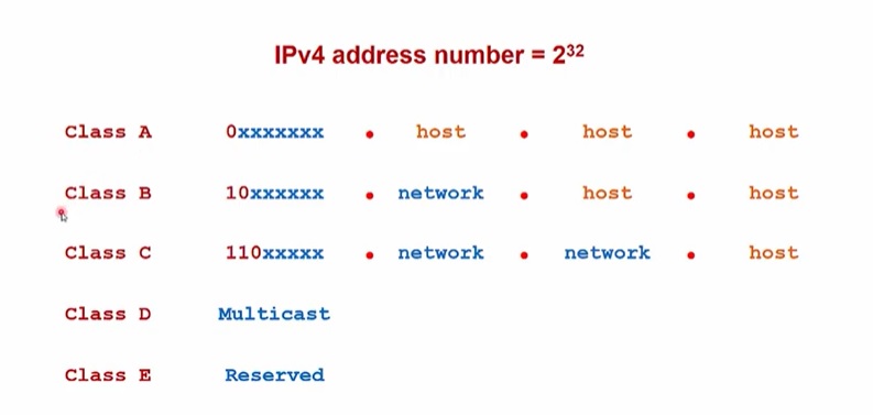 Các lớp địa chỉ IPv4: Địa chỉ IPv4 có độ dài là 32 bit nhị phân, tương ứng với tổng số 2 mũ 32 địa chỉ IPv4 trên toàn thế giới, tức là khoảng 4,29 tỷ địa chỉ IP. Để quản lý số lượng lớn địa chỉ IP này, người ta đã phân loại thành 5 lớp địa chỉ IP: A, B, C, D và E.